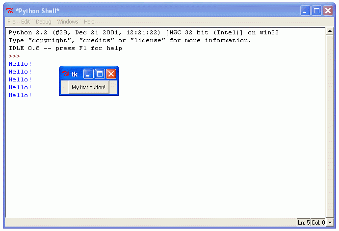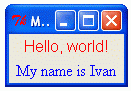 Текст 'Hello!' виводиться не у нашому вікні, а у вікні Python Shell.